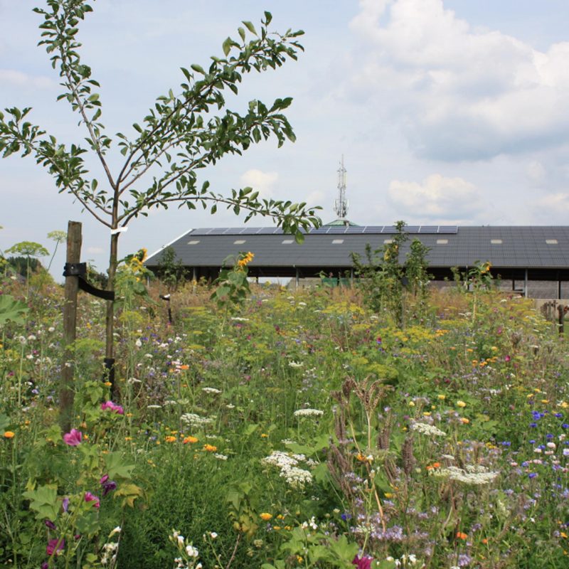 Door het voer zelf te verbouwen en de mest op het land blijft, hebben we weinig transportbewegingen. Onder andere zo, dragen wij ons steentje bij.