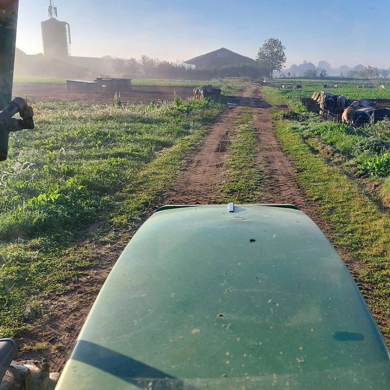 ..de eerste hokken werden gebouwd en de eerste stroken land bewerkt, ingezaaid en voorbereid zodat de eerste varkens konden komen. Zes jaar later lopen er naast de runderen nu ook 200 vleesvarkens en 8 zeugen rond op Dykhoeve.
